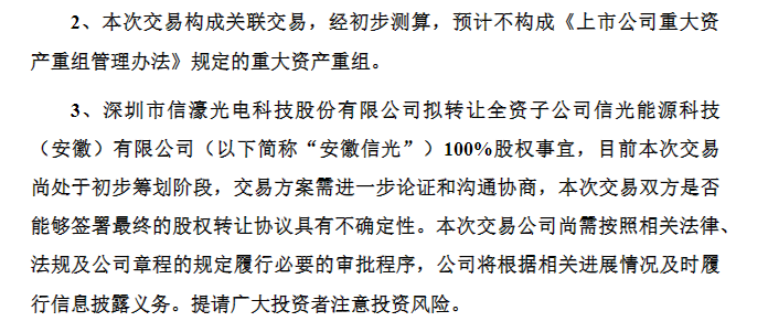 2025年6月23日,信濠光电发布公告称,拟将其全资子公司信光能源科技(安徽)有限公司(以下简称“安徽信光”)100%股权转让给立讯精密。
